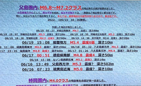 私が参考にさせて頂いているアキラの地震予報。
