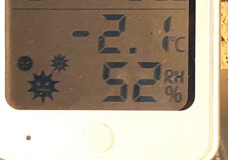 午前3時頃の当社の温度計ですが遂に今季最低いきなりの「-2.1℃」となってしまいました!