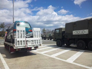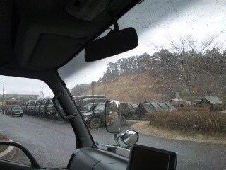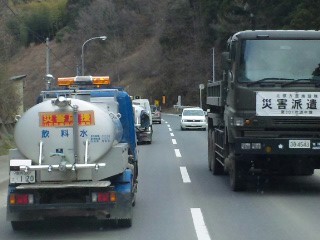 南三陸町に行く途中で色々な救援の為の車に出合います。