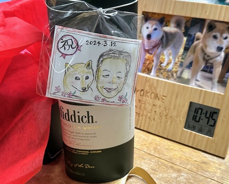 右の愛犬ヨコネの写真のフォトスタンドは私の60歳の誕生日の日に家族からプレゼントをして貰ったもの。