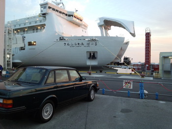 昨日の夜の7時過ぎに私とボルボをのせたカーフェリー「さんふらわあ ぱーる」は神戸を出航!