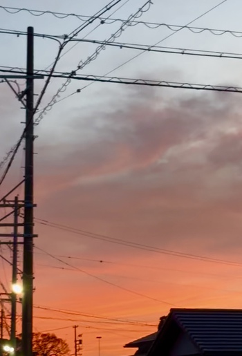 3番目の画像はやはりケムトレイルが東西南北お構い無しにウヨウヨ出た午後の空とそのケムトレイルが広がって出来た雲が夕日に照らされて出来た私にとっては毒々しい空の様子。