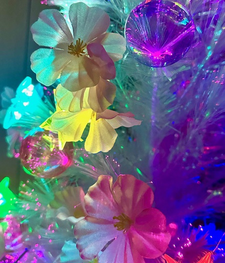 当社は「クリスマスの時にも!使ったツリー!(クリスマスツリーではありません!)」を正月には正月らしく飾り、2月には鬼のお面を沢山飾り「節分」を楽しみ、つい最近までは下の画像の様に桜の花を飾って点灯をしております。