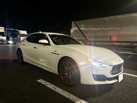 展示場に到着すると唯一車を停めるスペースがあったのですが何とマセラッティを停めた隣にはそのマセラッティの車探しをお任せ頂いたお父さんが先日購入を決めて頂いたばかりのアルファードとなったのです❗️