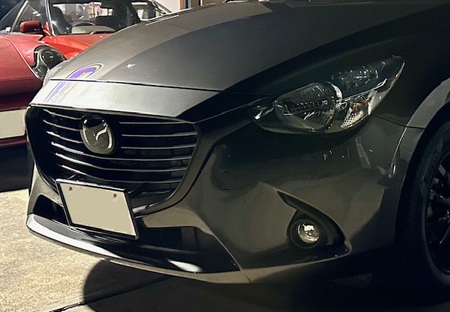 フロントグリルをデミオからあえてCX-3の物に変更をしたりアルミホイールやローダウンのご依頼も頂いておりました。