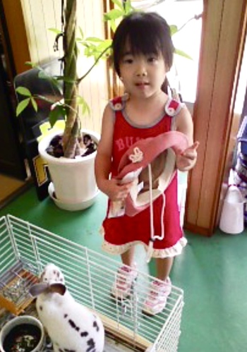 実はRちゃんは今から17年ほど前に愛犬ヨコネの大先輩である当社公認マスコットであった「ウサギのぴっと!」にウサギのイラストの入った帽子や洋服を着て遊びに来てくれていた女の子!