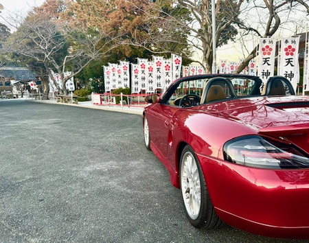 本日はご来光にも天候にも恵まれ,丁度出やすい場所にあったポルシェボクスターに乗り氏子である地元の七ツ森神社⛩️や展示場の側の天神社にも初詣に行って来ました。