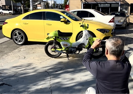その取材の対象となったのが当社の看板バイクとなっているイエローのリトルカブのカスタム車なのです!