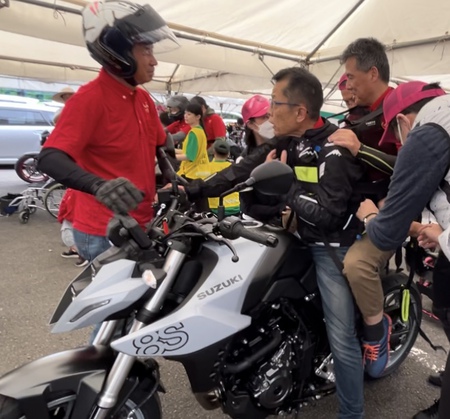 その出来事から身体にハンディを持っている方々にもバイクに乗って貰い鈴鹿8時間耐久レースの行われている雰囲気の中で風を感じて貰おうと「風の会」を立ち上げてくれたのです!
