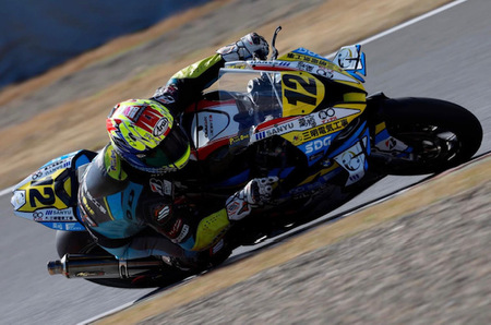 昨日の予選が寒さだけで無く天候の悪化で中止となり、公式練習走行時のタイムによりグリッドが決められる事になったのですが何と関口太郎選手は転倒をしてしまっておりタイムが計測されずに一番最高尾からの追い上げとなってしまいました。