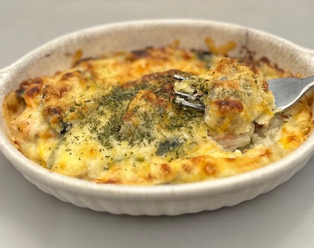 画像はそのカキを長男の奥さんが美味しいカキグラタンにしてお店に届けてくれたもの!!