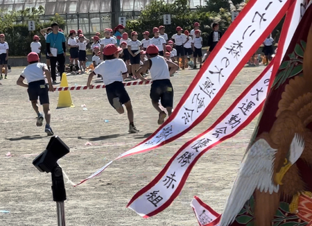 私の母校であり妹の母校、そして息子達の母校でもあり、孫達2人の母校である小学校の運動会。