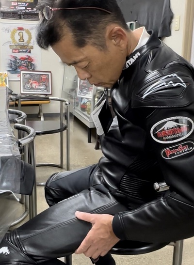 しかし!新たにこの年齢でもときめくあの皮ツナギを発注し遂に完成したのですが・・・・水谷勝師匠とは全く違った黒一色。