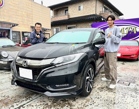 黒いボディは傷が目立ちやすく中々予算に合う綺麗な車両が見付かりませんでしたが約4ヶ月ほど待って頂きこの度の新車の様なピカピカなヴェゼルハイブリットRSの納車となりました!
