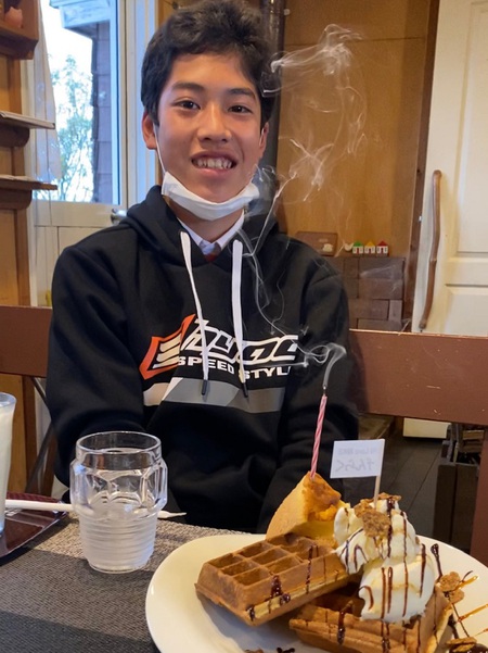 各自で好きな飲み物と一緒にスイーツを頼んだのですがここで何とマスターとマネージャーから本日が14歳の誕生日である髙平選手にスペシャルなスイーツのサプライズ!