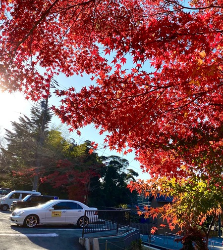 丁度、雲一つない朝日のまぶしい時間帯であり「本来の良い天気だとこんなに紅葉が綺麗だったんだ・・・・」と改めて晴天の大切さを知りました!