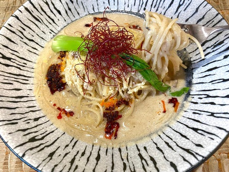 私は珍しく新メニューの白ゴマ坦々のパスタにチャレンジするも大当たり!