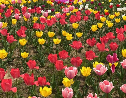 本当に見事に植えられた沢山のチューリップ達は本当に色とりどりで綺麗であり、私だけで無くここの畑の前を通過した殆どの方々の目を楽しませてくれた事でしょう。