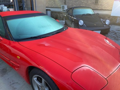 ただ朝は当社温度計では7℃であり2枚目の画像の通りで一気に寒くなったのか夜露が車にベッタリでした。