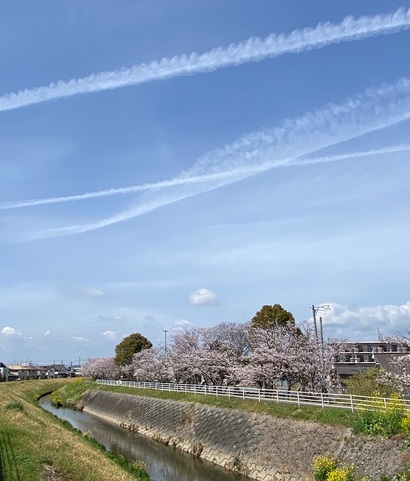 実は私も納車前に愛犬ヨコネとの散歩をしながら青空と桜のコラボの画像を撮って来たのですが何とお昼の12時前後からまたまたいつも皆様の身体や子供達の身体の事を私が心配し10年以上も前から訴え続けている「ケムトレイル」と世界中で騒がれ国によってはマスコミも取材をし戦っているあり得ない行為が始まってしまいました。