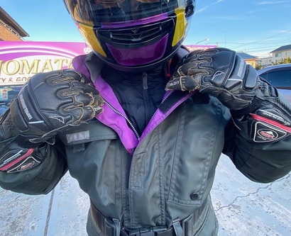 大型スクリーンやリヤサスが簡単にアジャスト出来るところやグリップヒーターやクラッチを握らなくてもシフトアップが出来るシステム等まだまだ他にもツアラーとして便利なシステムが付いていて本当に彼にはピッタリな様子!