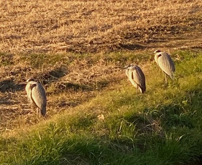 隣の田んぼには私がドアを開け閉めした音で目を覚ましてしまったアオサギ達が寝ぼけている様でしたが少し寒そうにもみえました。