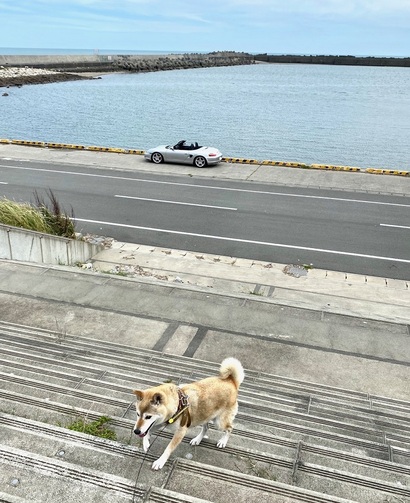 画像は愛犬ヨコネと雨がしっかりと止んだ後に散歩に行った福田港でのもの。