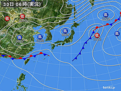 天気図を見てみて納得!まるで「人工」で高気圧を造った様な感じに日本の北側に高気圧が並んでおります・・・・寒くて当然かもしれませんね。