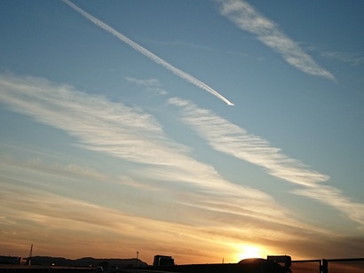 しかし、反対の空にはまたまた訳の解らない飛行機雲らしき物が現れ一気に空を汚し初めています。