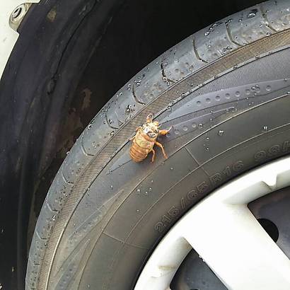 昨日の静岡市への出張中に従業員さんが思い出した様に「そう言えばさっき展示場でスズメが車のところから逃げたのでよく見てみるとこれがいたんですけどセミの幼虫ですよね?」と言ってタイヤにつかまっているセミの幼虫の写真を見せてくれました。
