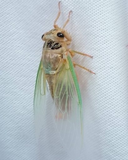 途中で羽が透き通っていることから「クマゼミ」である事が解り更にお腹の部分を見ると鳴く為の2つの膨らみがあり「雄(男の子)」である事も解りました。
