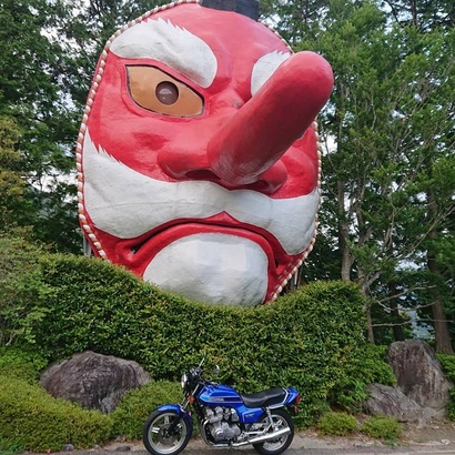 そんな感じで慣れた春野町へのワインディングを軽快に心地良く走っているとあっという間に目的地である日本一の大きさの大天狗さんの元に到着。