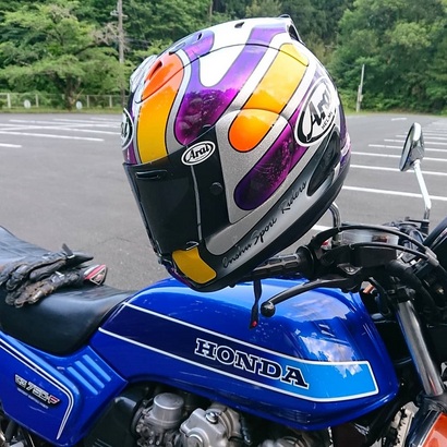 昨日の相棒に選んだのはホンダCB750F!ノンレストアの50歳!ノンレストアに拘ってはおりますがタンクやサイドカバーのキャンディブルーのペイントはヘルメットのペイントもお願いをしたビクトリーカスタムペイントの中畝くんの作品!