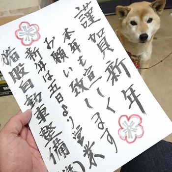 今年最後のお客様が笑顔でお帰りになった後で本社と展示場の窓ガラスに貼る新年の挨拶文を簡単に書かせて頂きました。