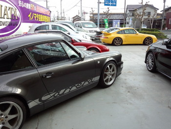 私も車屋としてそして外車に楽しく乗っている見本となる為にも今まで色々な空冷ポルシェ911や水冷ポルシェ911にも沢山乗って来ましたが私が一番好きなポルシェ911は「ポルシェ博士がデザインをした顔」を持つ当社のデモカーでもある下の写真の最終モデルの964というモデル。