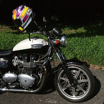 元々お洒落である彼女が選び初めから自分色にタンクをペイントしたお洒落なトライアンフボンネビル。