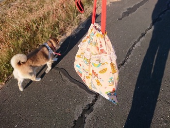 娘さんが手にしていたのは私へのお土産か渡し忘れたクリスマスプレゼントだと思い手にしたのですが袋から取り出すと愛犬であり番犬であり看板犬として営業も頑張っている横音(ヨコネ)の散歩袋である事が解りました。