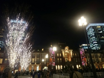 混雑を避けるためにボランティアを行っている様にも見えた一人の男性に聞いてみると東京駅の前で夕方からイルミネーションを点けるイベントがあるとのこと。