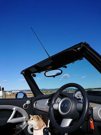 そんなMINIのカブリオレを全開にし、助手席の足元に愛犬のヨコネを乗せ散歩を兼ねた簡単なドライブに行って来ました!