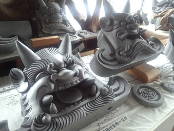 地元でも他県でも有名な「笑う鬼瓦」の製作や、新袋井駅のフクロウのオブジェや色々な方々から鬼瓦以外にも頼られている「鬼秀」さんが、来年の戌(犬)年を迎えるにあたり「愛犬」のオブジェを自分で製作して飾ってみては?という提案をして頂きました!