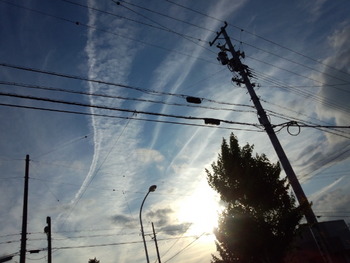 次の画像は怪しい飛行機雲が私達の青空を奪っている時のもの・・・・・・悪天候と関係があると言われもいる様です。
