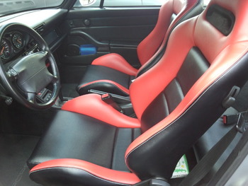このお客様のポルシェはエアロなどでスポーティに変身しており先日当社で特別なシートステーの加工をさせて頂きながら取り付けたシートが更に車をスポーティに見せています!