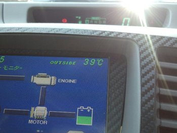 写真は私の愛車である初期型プリウス当社スペシャルバージョンの画面を撮ったものですが停車中には42℃!走っている最中には39℃となっておりました。