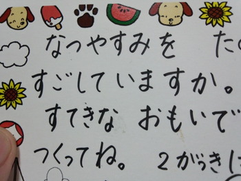 上の写真はお姉ちゃんの孫っちに先生から届いた暑中見舞い!