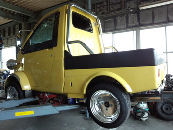 そんなミゼットⅡの仲間である「七辻屋」さんが今回遠路東京から前回の車検に引き続きまたまた安く仕上げても人件費と交通費が掛かってしまう「高いメンテナンス!?」にご来店をして頂きました!