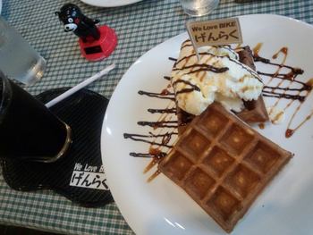 一緒にカメラマンとして行ってくれた従業員さんが関口太郎応援ワッフルセットを食べてくれ嬉しく思いましたがこの「関口太郎応援ワッフルセット」は元々げんらくさんのワッフルが大好きであった彼の応援の為にマスターが始めてくれたメニューであり、金額の一部が彼のレースのスポンサードになるのです!