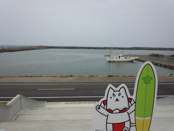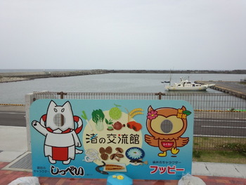 大きな津波の避難タワーの直ぐそばにキャリアカーを停め車を降りてみるとスッキリとした港を見下ろすかの様に「渚の交流館」が建っておりました。