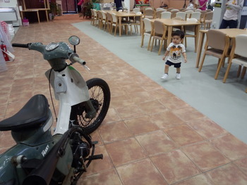 勘の鋭い方はもうお解りでしょう!なんとそのPEAKYちゃんが場内の片隅でカブのメンテナンスを行っているではありませんか!!