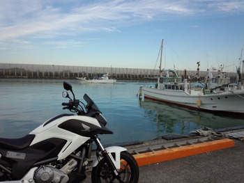 漁船の音が響く海はとても穏やかで「さあ今日も頑張らないと!」と自然に思う事ができ改めてラフロードも楽々こなすNC700の良さを感じました!