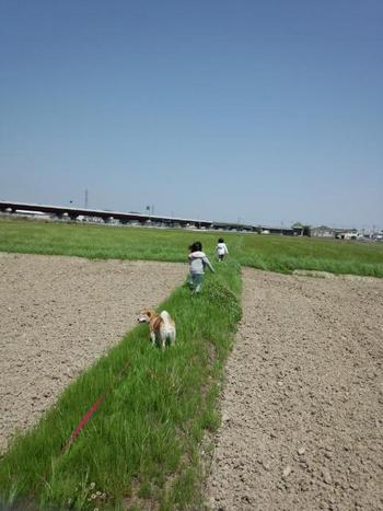 写真は孫っち達と息抜きを兼ねて一緒に行った愛犬ヨコネとの散歩!タイトルを「あぜみち」なんて感じにして投稿をしたいくらい!
